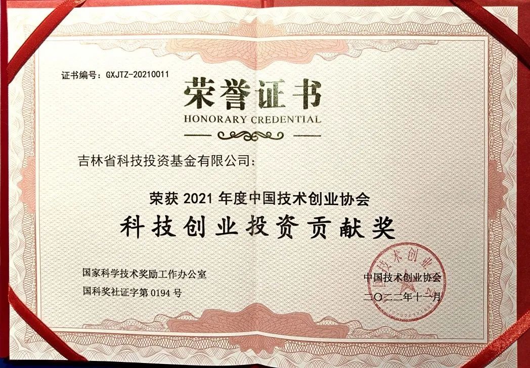 吉林科技投資榮獲2021年度“科技創(chuàng)業(yè)投資貢獻(xiàn)獎”
