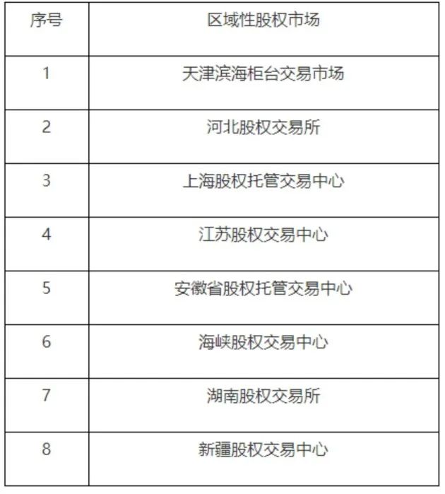近日,證監(jiān)會公示了第二批“專精特新”專板建設(shè)方案備案名單,包括天津?yàn)I海柜臺交易市場、河北股權(quán)交易所、江蘇股權(quán)交易中心等8家區(qū)域性股權(quán)市場。